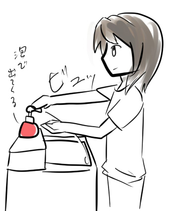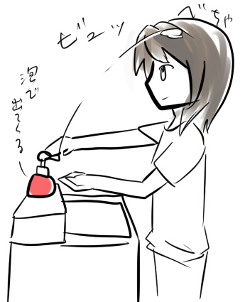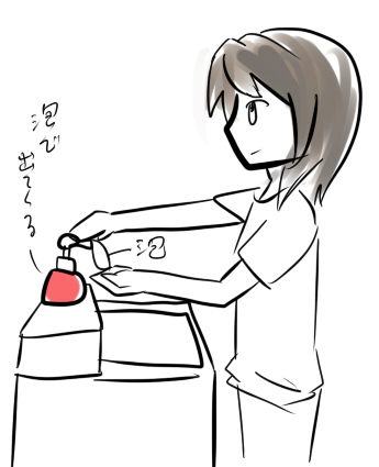 私は朝洗顔するときは、石鹸が泡で出るやつを使っています。