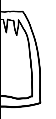 スカートの型紙はこんな感じで、左側の直線部分が わ になるんですよ。つまり、これはスカートの半分の形なんです。で、さらにこれを前側と後ろ側で2枚要ります。