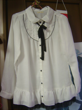 服を手に取った時、予想と外れて「王子みたい」と言いませんでした。可愛いじゃない、と言われたのでそのままお買い上げ。2990円でした。身長が154cmから162cmの人に適切っぽいです。ああ、私駄目じゃん。私188cmだから……