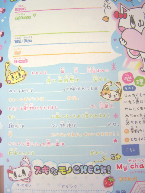 ところで昨日、部屋を片付けると見せかけて発掘作業してたんですが、小学生の頃クラスの人々にプロフィール書いてもらったんですよ。そのプロフィール帳が出てきまして。読み返したらなんか支離滅裂でウケたのでネタにしてみる。