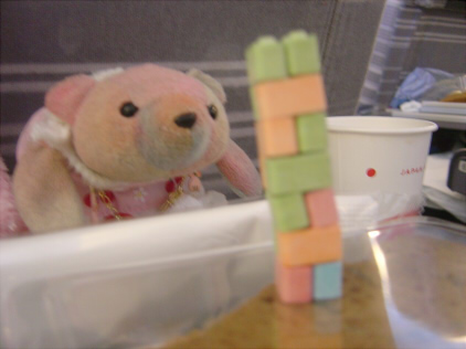 その前の席の子がお菓子をもっていたので貰いました。よくあるブロック型のラムネです。現地で買ったようです。私と隣の席の子はそのラムネをえらく気に入って、ずっとその袋を持っていました。