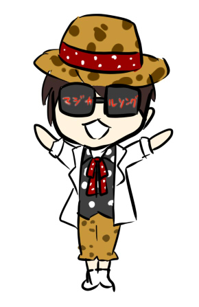 「マジカルソング」と赤い光が流れるグラサン、ヒョウ柄帽子に赤に白ドットライン。黒に白水玉のシャツ、赤リボン、白?金アクセントジャケットに、ヒョウ柄相葉丈ズボン、白スニーカー。これだけでも充分ですが、照明が落ちると虹色に服が光るというマジカルっぷり!ブッとんでるね~wwwさすがメディカルチェックwww(さらに違う